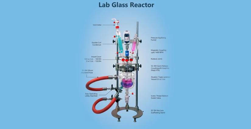 Single Wall, Double wall or Triple Wall Glass Reactor