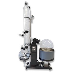 As the solution is heated, the solvent recovery begins by sending vapors through a vapor duct that leads to a glass condenser which has been chilled enough to recondense the gas solvents back into a liquid.